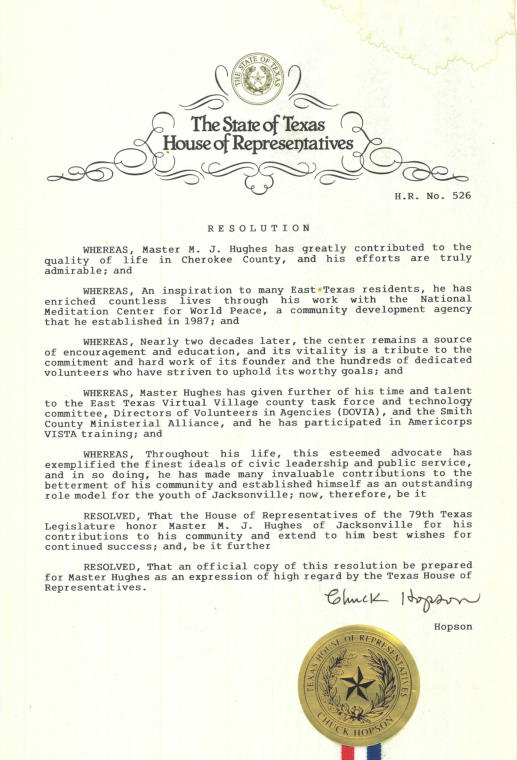 Zen Master Hughes was honored with the National Crime Victims' Service Award by the Office for Victims of Crime in 2006. This prestigious award recognizes individuals and organizations for their outstanding achievements and extraordinary acts in support of victims and survivors, as well as in expanding access to justice across all communities